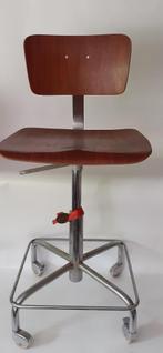 Originele swivel desk chair van het duitse bremshey & co uit de jaren 50. Zitting en rug in multiplex hout met noten fineer. Onderstel uit chroom. Heeft lichte gebruikssporen op de zitting - enkel