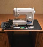 Elektrische naaimachine met bedieningshandleiding (boekje + dvd)en allerlei toebehoren (o.a. Knoopsgatvoet, stopplaat, ovale schro