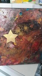 Peinture abstraite dorée et colo.rée. Dimensions : 50 cm x 50 cm cette peïinture a été exposée à waterloo durant le parcours d'artistes. La technique est celle de l'acrylique pouring av