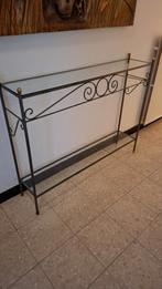 In zeer goede staat sidetable deze tafel ideaal voor in een gang, hal, terras of in de tuin afmetingen : lengte : 120cm hoogte : 100 cm breedte : 26cm afhalen in wilrijk mag weg voor €15