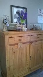Mooie geboende, landelijke kast met 2 deuren en 2 lades. De kast is ongeveer 100 jaar oud. De binnenkant en achterkant is volledig vernist zodat je die kan poetsen. De kast is volledig behandeld tegen