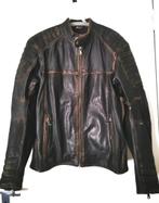 Veste moto taille m, en cuir, effet usé. Marque modeka. Protections épaules, coudes et dos. Une tirette d'aération de chaque côté. Une tirette en bas de manches, aux poignets. Poches extérieures e