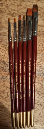 Zwart / witte en bloed creme. Grootste zwarte penseel nieuw. 2 Andere zwarte enkele x gebruikt. Bruine penselen,gebruikte staat. Zwarte en 1 bloed creme, nieuw. Paarse glitter, nieuw. Prijs overeenkom