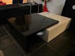 Table basse extensible élégante en noir et blanc brillant : une pièce au design élégant et moderne qui offre à la fois un contraste visuel et un espac