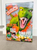 Hoe speel je dino crunch? Gooi de dobbelsteen om te kijken welk kleur ei gered moet worden. Heel voorzichtig til je het blad op en met het pincet pak je nog voorzichtiger een ei op. Heeft de t-rex het