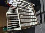Wit park op wieltjes (78×98) in hoogte verstelbaar met matras, aerosleeptopper, aerosleephoeslaken en 2 overtrekkes (rood en roze)
