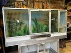 Volledig in aluminium , met voederplateau en mestrooster. 150 Cm breed x 75 cm hoog x 60 cm diep enkel de bovenste kooi op de foto