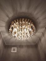 Moderne luster met diameter +/- 48cm en rond de 30cm diep. Ideaal om een grote ruimte wat opvulling te geven. De kristallen zijn l