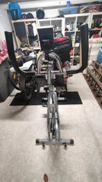 Hometrainer met vliegwiel . Loodzwaar. Maakt klein beetje geluid als de weerstand hoog staat. Verder doet het wat het moet doen .