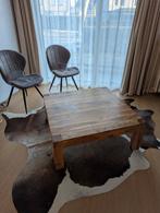 Massief houten salontafel. Erg stevig! 100Cm x 100cm x 40,5cm heeft wat gebruikerssporen (zie foto's) op te halen te vinkt (deinze)