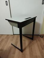 Tafeltje voor 1 persoon met boekenschuif onder tafelblad. In goede staat maar aan de achterkant een kras. Maar als die tegen de mu
