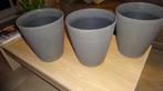 3 pots de patio gris identiques - trous en plastique dans la surface de base : diamètre : 18 cm diamètre supérieur : 29 cm hauteur : 32 cm quelques traces d'usure 1 pot : 4 euros 2 pots : 7 euros