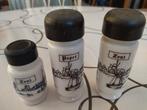Potje met zwart opschrift peper en potje met zwart opschrift zout hoogte 12 cm - diameter 4 cm potje met blauw opschrift zout - hoogte 8 cm - diameter 4 cm alles in goede staat