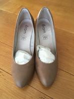 Belles chaussures pour femmes à talon traînant de couleur beige en très bon état. Hauteur du talon arrière : 7 cm