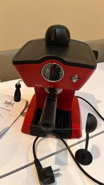 Een compacte en stijlvolle espressomachine van bluebell , uitgevoerd in rode kunststof – perfect voor wie snel een espresso wil ze