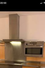 Inox blad lengte 203cm en 64cm diepte met keramische kookplaat inox dampkap