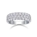 Ring met moissanietsteentjes voor een totaal van 1,86 karaat. Als nieuw! 31 Moissanietsteentjes van elk 2,5 mm. De steentjes zijn gezet, niet geplakt! Breedte ring : 7,5 mm maat 54 kleur : zuiverste w