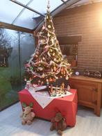 Kerstboom met versiering (slingers - balonnen) hoogte 1m80 ook kerstbeeldjes uit gips van ong.1960 Met een hoogte van 15 a 18 cm pluche rendieren niet inbegrepen.