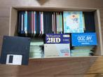 2 lots d'une centaine de disquettes 3.5" quelques unes en double densité = 720 kb la plupart en haute densité = 1,44 mb avec étiquettes vierges et quelques boîtes certaines sont bootables ave