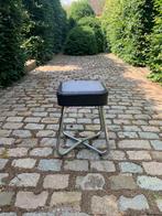 De zithoogte is 50 cm – ideaal in een atelier, of als accentmeubel in je interieur. Het zitvlak is een strak vierkant van 34x34 cm, bekleed met donker skai. Waarschijnlijk uit de jaren 60, maar met ee