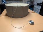 Groot model moderne hanglamp. 70 Cm diameter, 30 cm hoog. Taupe kleur, aluminium accenten, uitneembare diffusor inc 3 bijpassende dimbare led-lampen