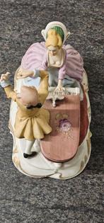 élégante composition en porcelaine dans le style romantique du xviiiᵉ siècle. Scène représentant une dame jouant d’un instrument à