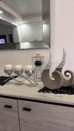 Ensemble de mobilier complet comprenant une horloge. Le miroir accroché au mur sur la première photo n'est pas à vendre. Sans sièges 450€ avec sièges 550€ tout est en bon état.