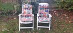 A vendre paire de chaises de jardin plastic blanc marque: grosfilex modèle robuste à dossier inclinable avec 2 coussins à motifs j
