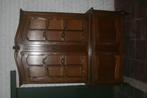 Meuble vitrine en bois, massif, avec portes et étagères. Hauteur totale : 183 cm. Largeurs : bas : 123 cm, haut : 113 cm. Profonde