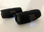 Twee exemplaren van de jbl charge 5 draadloze speakers in zeer goede staat met deze 2 samen worden ze echt super-krachtig. Met de