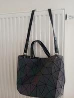 Sac holographique géométrique aux couleurs changeantes. Peut être porté comme sac à bandoulière avec ceinture ou comme sac à main.
