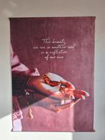 Doek met quote. 2 Houten stokken houden de doek strak en touwtje om te bevestigen. In perfecte staat!