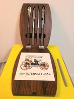 Planche à charcuterie/fromage pliante vintage en bois, avec ustensiles en acier inoxydable avec manches en bois. Quelques griffe au dos