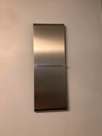 Horloge murale rectangulaire en inox en très bon état, fonctionne très bien. Hauteur 92 cm x largeur 32,5 cm et profondeur (courbure) 5cm.