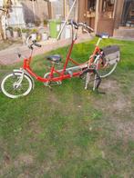 Mooie tandem ouder/kind met fietstas en mogelijkheid voor zitbeugel om het kind of eventueel minder stabiele personen te steunen.