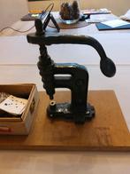 vintage gietijzeren handpersmachine, waarschijnlijk gebruikt als oogjespers of klinknagelpers