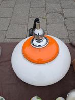 Lampe rare de l'ère spatiale avec abat-jour en verre acrylique orange et blanc. La lampe crée une lumière chaleureuse et chaleureuse. En très bon état et peut être offert à un prix raisonnable