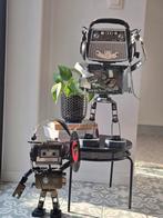 Deze twee handgemaakte robots zoeken een nieuw thuis. Geen lopende band, geen plastic massa, maar puur vakmanschap en een flinke dosis persoonlijkheid. 100% Uniek: er zijn er maar twee van gemaakt, d