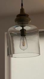 Dia 25cm hoogte 25cm helder glas afgewerkt met hout .