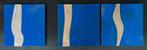 3 carreaux muraux/bas-reliefs carrés en céramique mesurant 41,5 cm x 41,5 cm en grès et doré. Ils ont été accrochés comme décorations dans l'exclusif établissement de bien-être b&b inblauw. Le