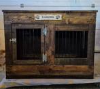 Banc en bois massif fait maison avec barres en béton pour grands chiens. Dimensions intérieures : 96 cm/70 cm, hauteur 67,5 cm dim