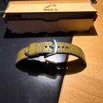 Mooi olijfgroene lederen horlogebandje voor aanzet van 20 mm. Met rvs stoere gesp! Is hoogglans gepoleerd (foto geeft dit slecht w