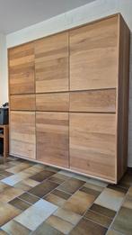 Grand meuble salon, salle à manger, bureau,... Forme épurée minimaliste en chêne clair huilé (aspect légèrement satiné) massif. 3 Portes haut, 3 tiroirs et 3 portes bas. Très grand volume de rangement