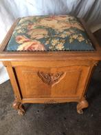 Siège/coffre louis xv en chêne avec couvercle à charnière avec coussin de siège rembourré mis à jour avec le tissu sanderson origi