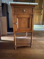 Antieken nachtkastje in eik met bovenblad in witte marmer. 50X50x +/-75cm