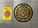 Aztec kalender met uitleg boekje. (Eng). Diam: 32 mm dikte: 3 mm is degelijke plaat, niet gewoon plastiek verschillende ringen kunnen niet gedraaid worden. Handleiding: easy map. Full color. History a