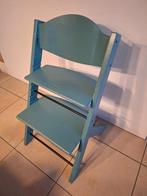 De blauwe treppy meegroeistoel bevat gebruikssporen maar is in nog in prima staat. Aangekocht in 2022