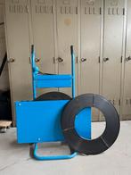 Support d'emballage en métal marque : rajapack l'ensemble est complet avec une pince à sceller, une bobine et 2 rouleaux d