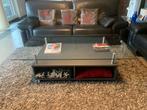 Salontafel ikea begin jaren 2000. Antraciet grijs houten blok met glazen blad op wieltjes afmetingen: - totale hoogte: 40cm - glazen blad: 135cm x 74cm - houten blok: 100cm x 60cm x 21cm af te halen i