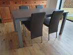 Tafel uitschuifbaar langs 2 kanten. Volledig ingeschoven is deze 150cm lang 1deel uitgeschoven meet deze 200cm lang 2 delen uitges